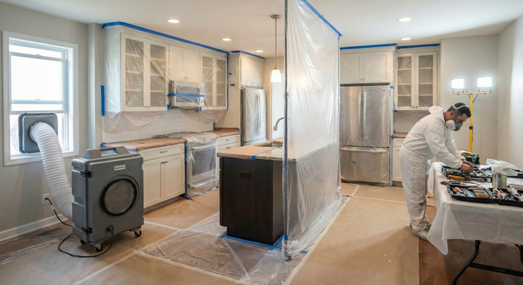 We prioritize proper ventilation and dust control throughout the entire project. Work areas are sealed, and specialized equipment is used to maintain air quality. This ensures a clean, safe environment while delivering flawless results.