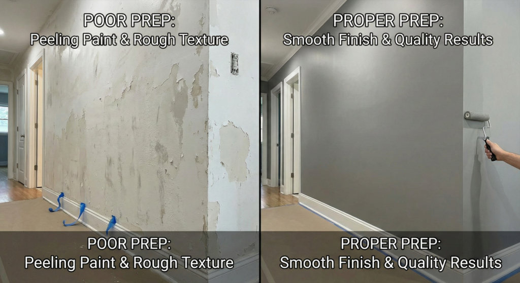 Proper preparation ensures paint adheres correctly and lasts longer. Skipping this step can lead to peeling, uneven texture, and visible flaws. Our prep process guarantees a smooth, durable, and high-quality result.